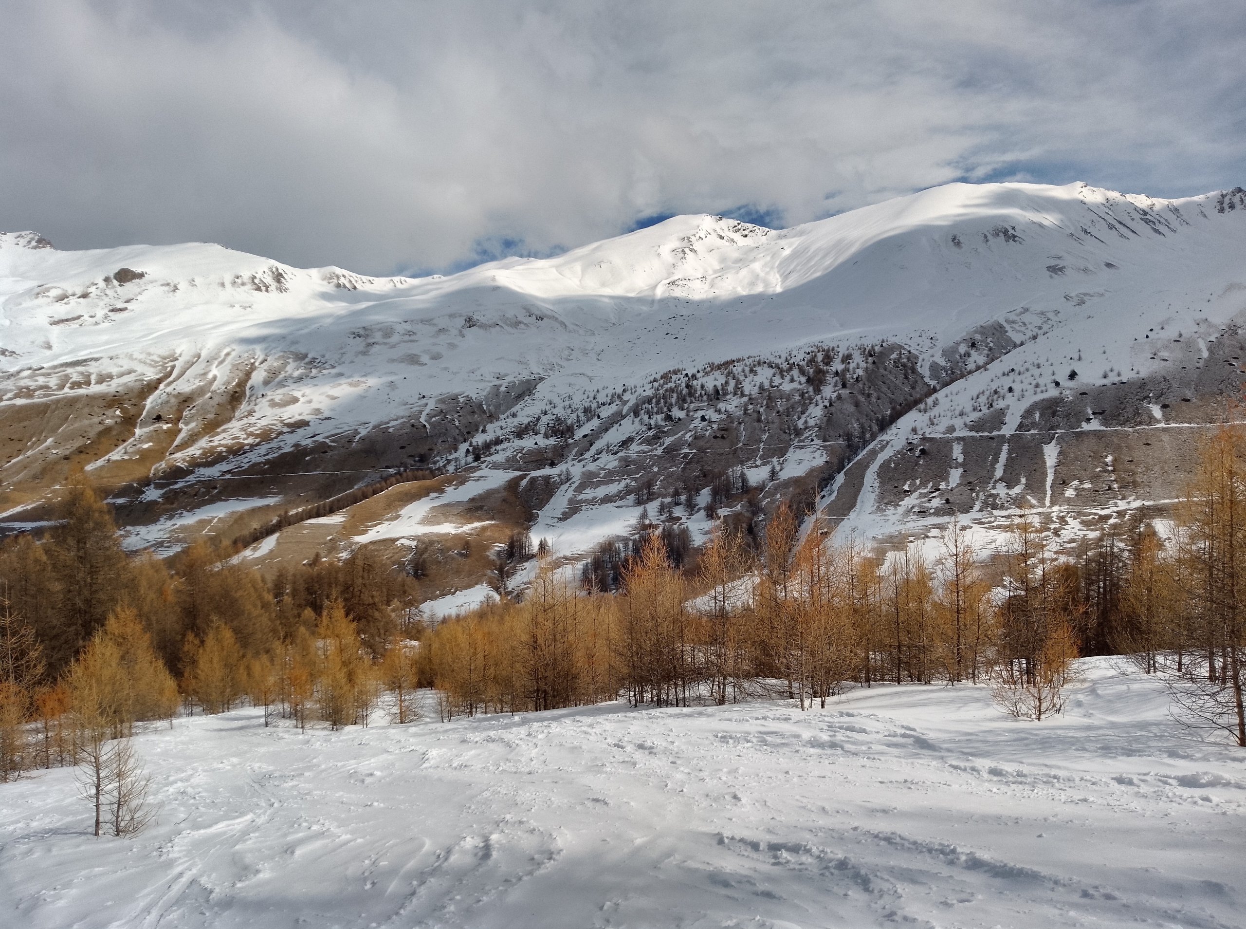 Profitant d’un léger décalage annonce sur le vent violent de la nuit en notre faveur nous décidons de retenter du versant nord au col du Longet/pic traversier en partant du pont de Lariane.