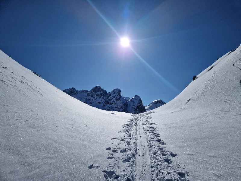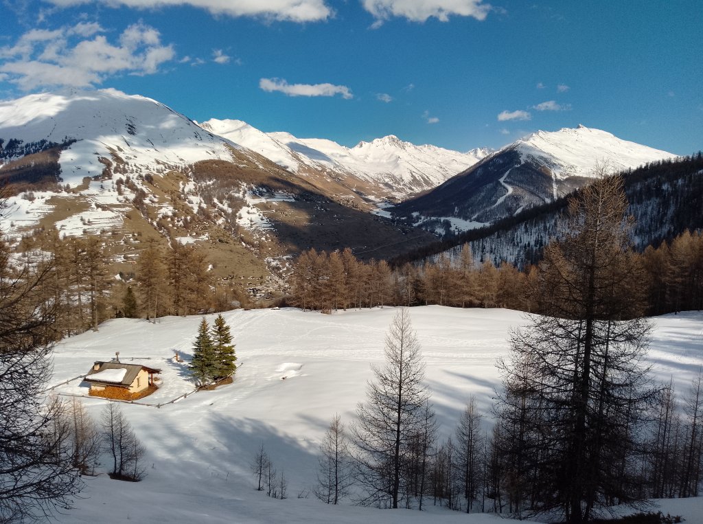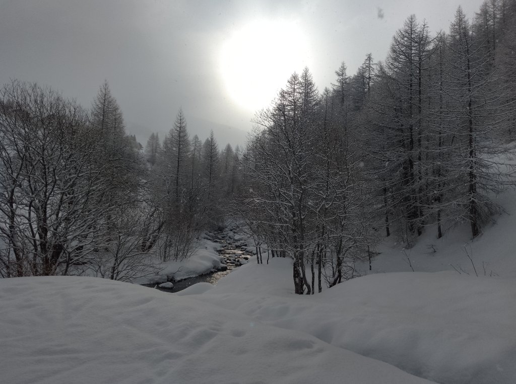 7h50 : Départ à ski du parking de la Vieille Tante, Alt 1326m, 500 m en contrebas du hameau du Châtelard.